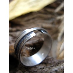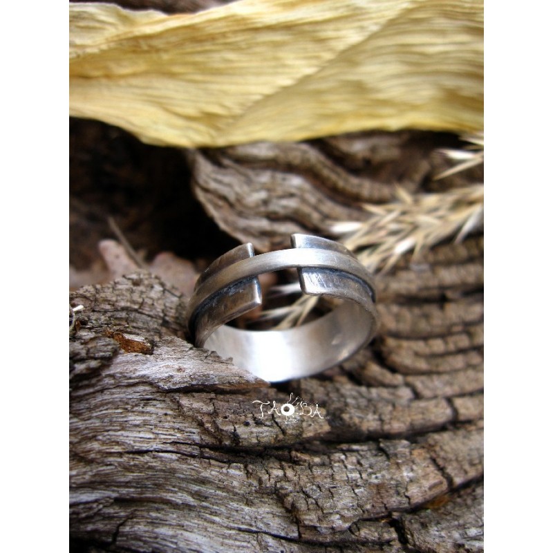 Anillo cerrado para hombre, con texturas orgánicas y acabado oxidado. Para compras on-line contactar antes con nosotros para hacerlo ala medida del su dedo. Puede escribirnos a través de la web, o contactandonos a travésde nuestro correo info@taoba925.com