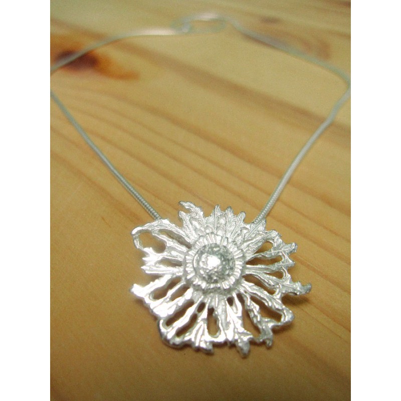 Pendentif de la fleur Cardabelle realicé en argent avec chaine en argent, longueur 45 cm
